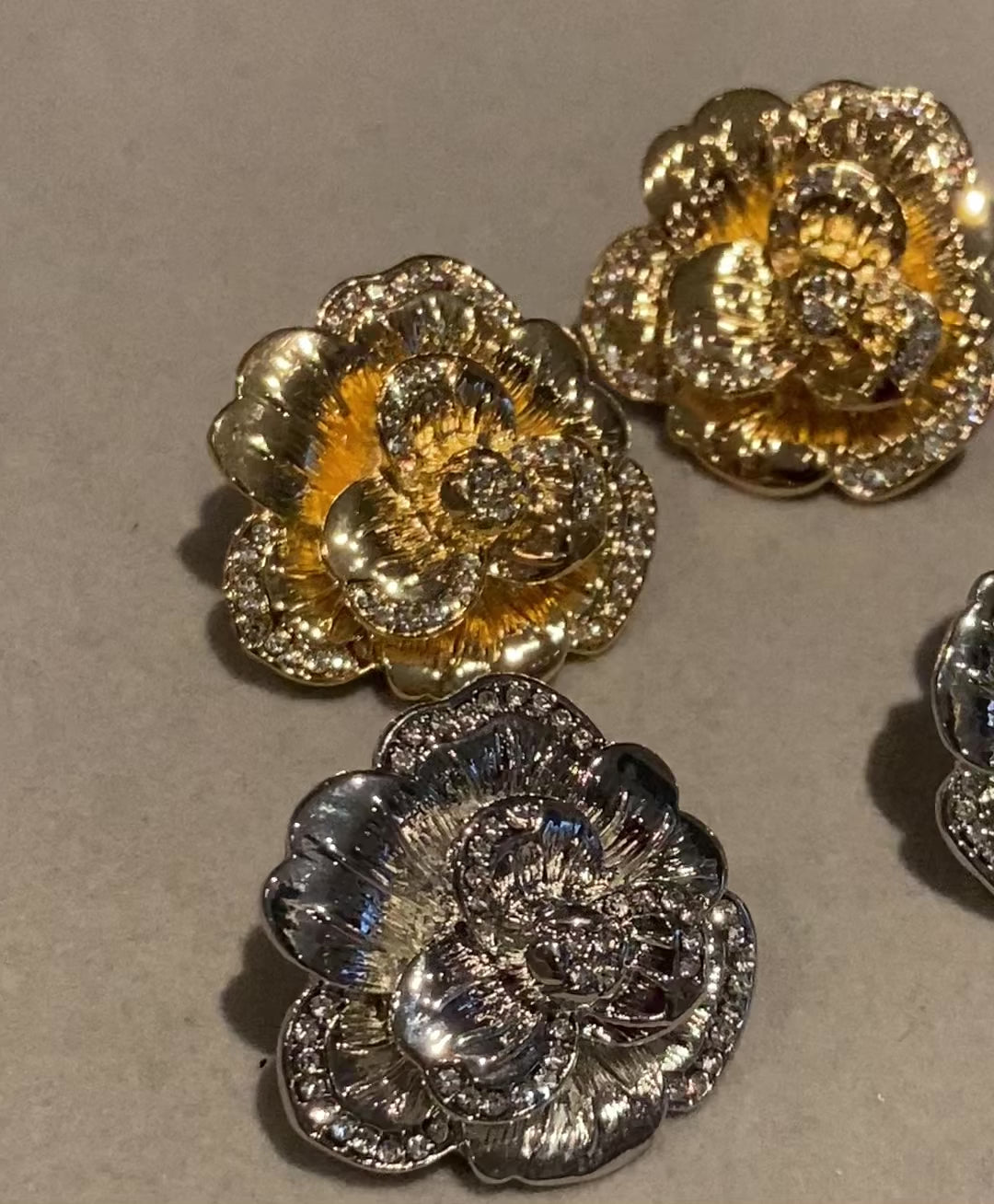 Elegant floral earrings crafted from stainless steel and adorned with crystal stones, perfect for adding a touch of timeless sophistication to any outfit.
